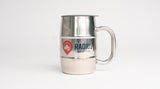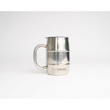 The 16 oz barrel mug is distinctive, functional, and strong. This stainless steel mug with its wide grip handle will become your favorite whether it's a travel buddy or within easy reach from your favorite chair. Beer, coffee, tea, or soft drinks stay cold for hours. This stainless steel mug is styled like a beer barrel but isn't just for carbonated hops and malt. Your coffee, beer, or drink of choice will stay inside the mug with the open/close slider lid.